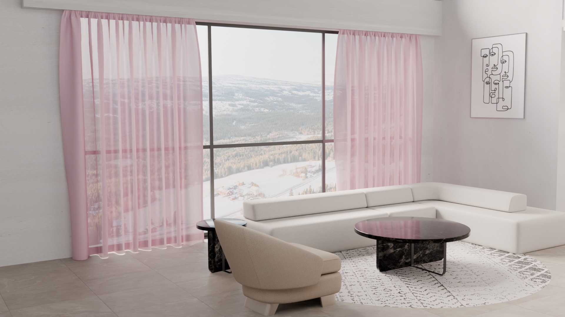 Silkkimäinen ja kauniisti laskeutuva kangas, joka suodattaa valoa pehmeästi